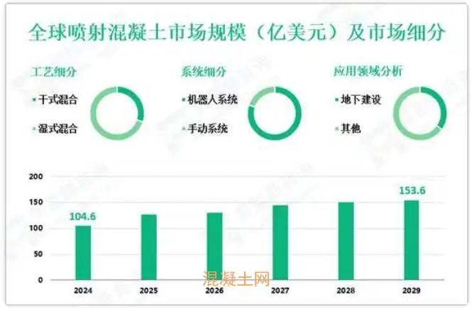 2024年,全球喷射混凝土市场规模为104.6亿美元,预计到2029年其规模将增至153.6亿美元。