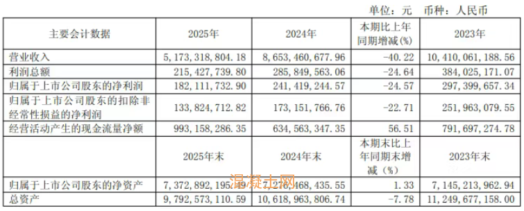 宁夏建材发布2025年年度报告显示,公司全年实现营业收入51.73亿元,较上年同期减少40.22%;归属于上市公司股东的净利润1.82亿元,同比下降24.57%;基本每股收益0.38元,同比下降24%。