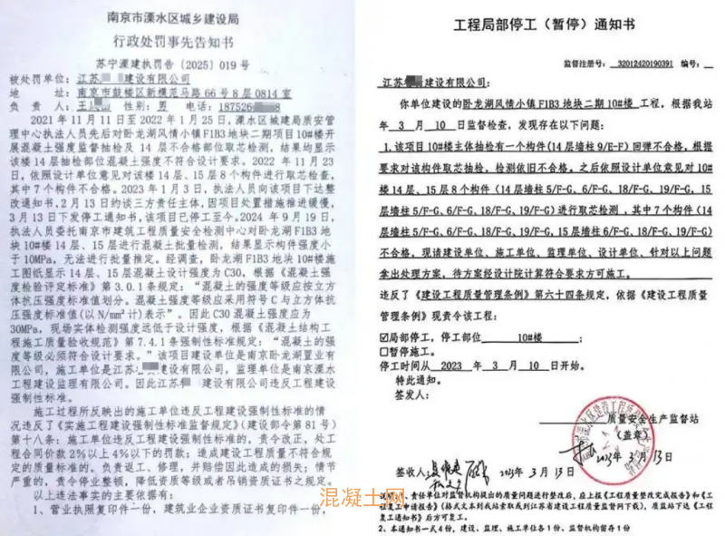 然而,2021年9月23日,质监部门常规抽检发现,这两层主体结构混凝土强度严重不合格:设计标准要求C30强度,实际检测值低于10MPa,不足设计要求的三分之一,无法满足主体结构安全承载要求。